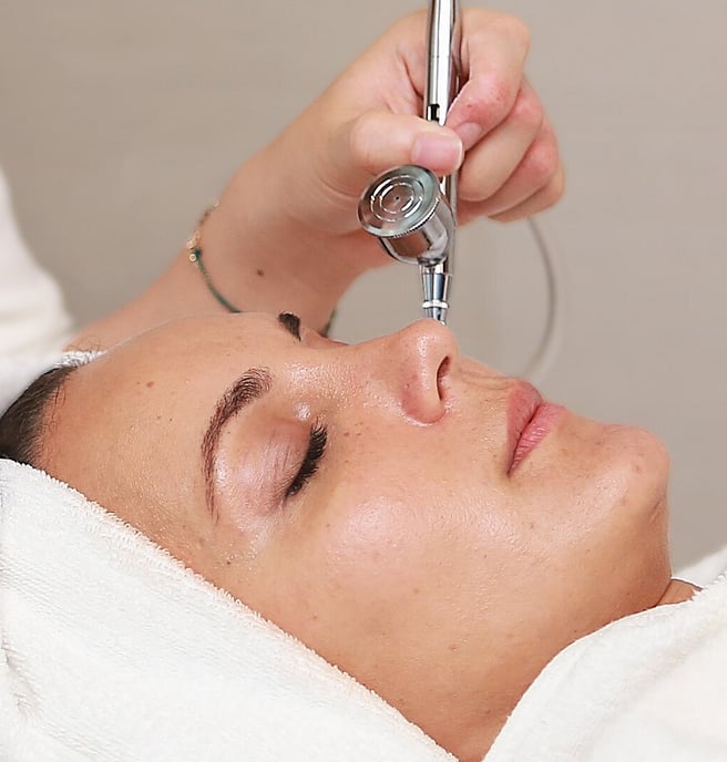 Your experience begins with a thorough cleanse and gentle exfoliation to prepare your skin. A customised serum blend is then applied and infused using a cooling oxygen jet—similar to an airbrush—that delivers active ingredients to the deeper layers of your skin. The sensation is refreshing, calming, and incredibly relaxing..